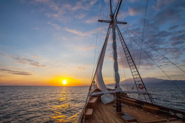 Hike to the island peak for breathtaking views of rock formations and surrounding waters. The trek ends at a white sandy beach, where you can relax and enjoy a stunning sunset while the crew prepares a delicious meal on the deserted shore.